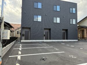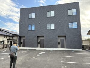 群馬県渋川市にて施工しておりました木造3階建てアパートが、ついに竣工いたしました。スタイリッシュなブラック外観と、快適性を追求した設計が特徴の本物件。地域に新たなランドマークとなる、完成度の高い建築に仕上がりました。