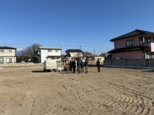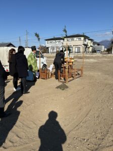 1月16日、雲一つない快晴のもと、前橋市富田町の建設予定地にて地鎮祭を執り行いました。 地鎮祭とは、工事を始める前にその土地の神様を祀り、工事の安全と、完成した建物が末永く繁栄することを祈願する大切な儀式です。